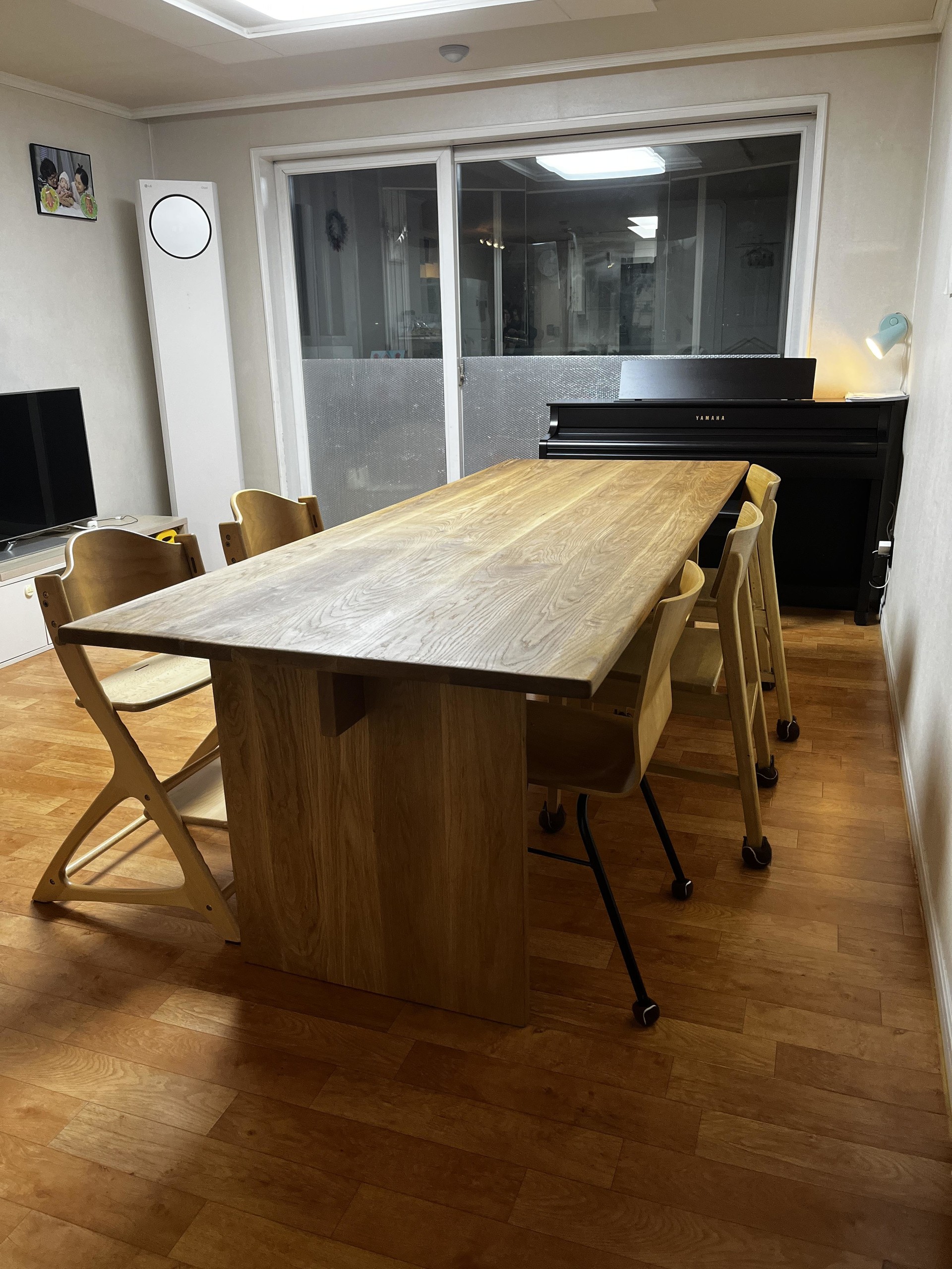 화이트오크로 제작된 대형 다이닝 테이블 입니다 ^^ 대구지역에 신혼부부 고객님들께 주문해주신 대형 테이블..^^ 설치하느라 애먹었지만.. 전체적인 나뭇결의 질감과 원목