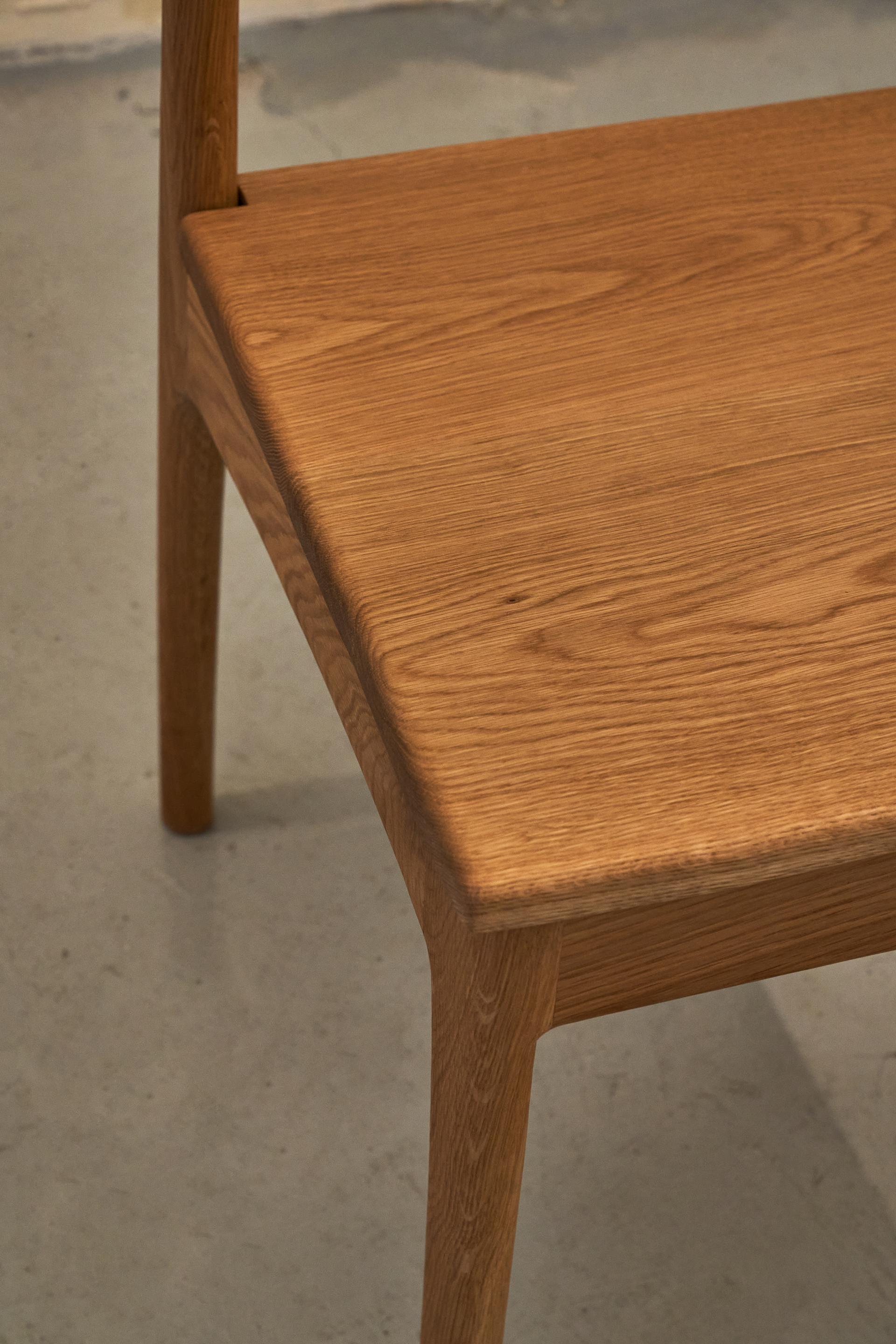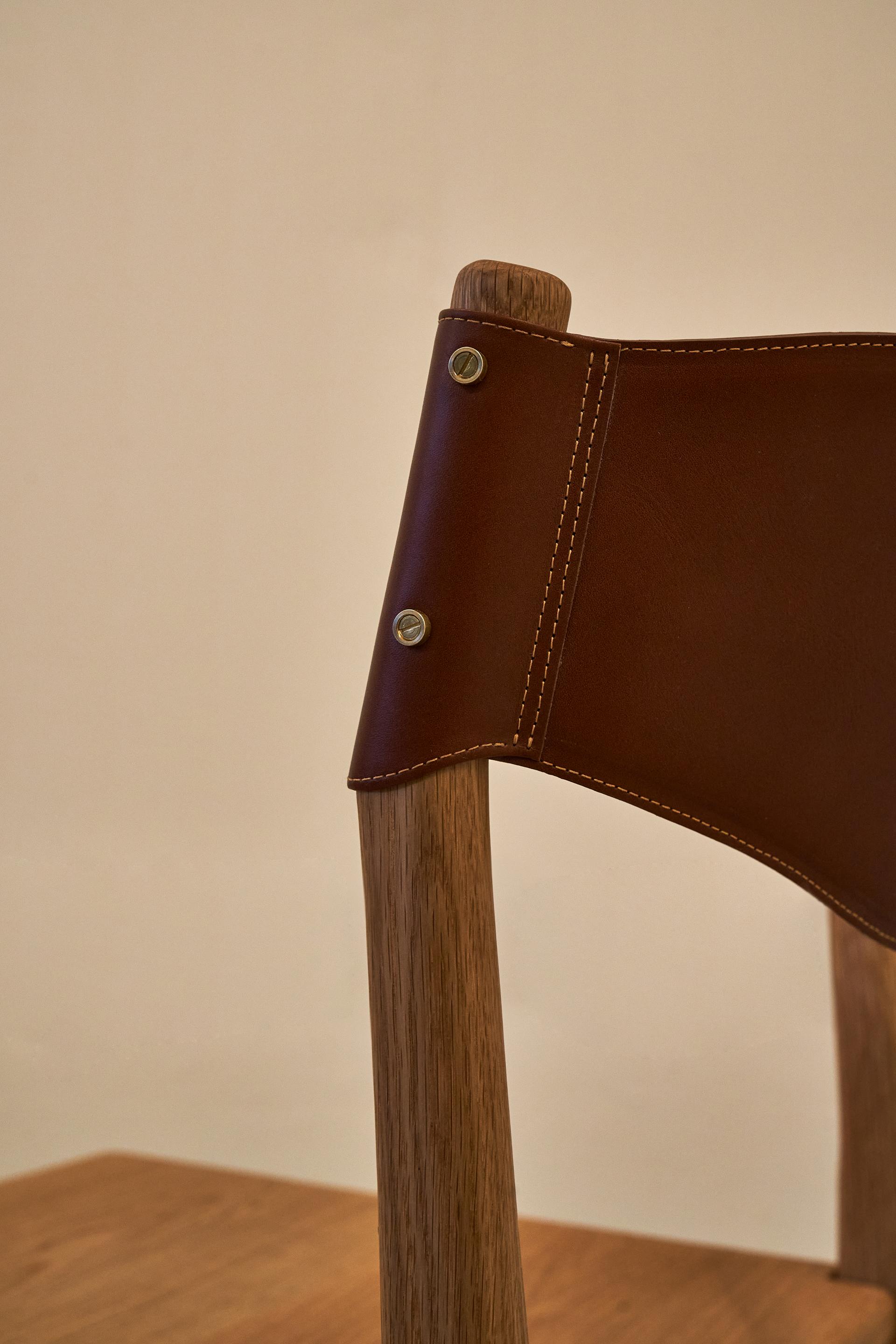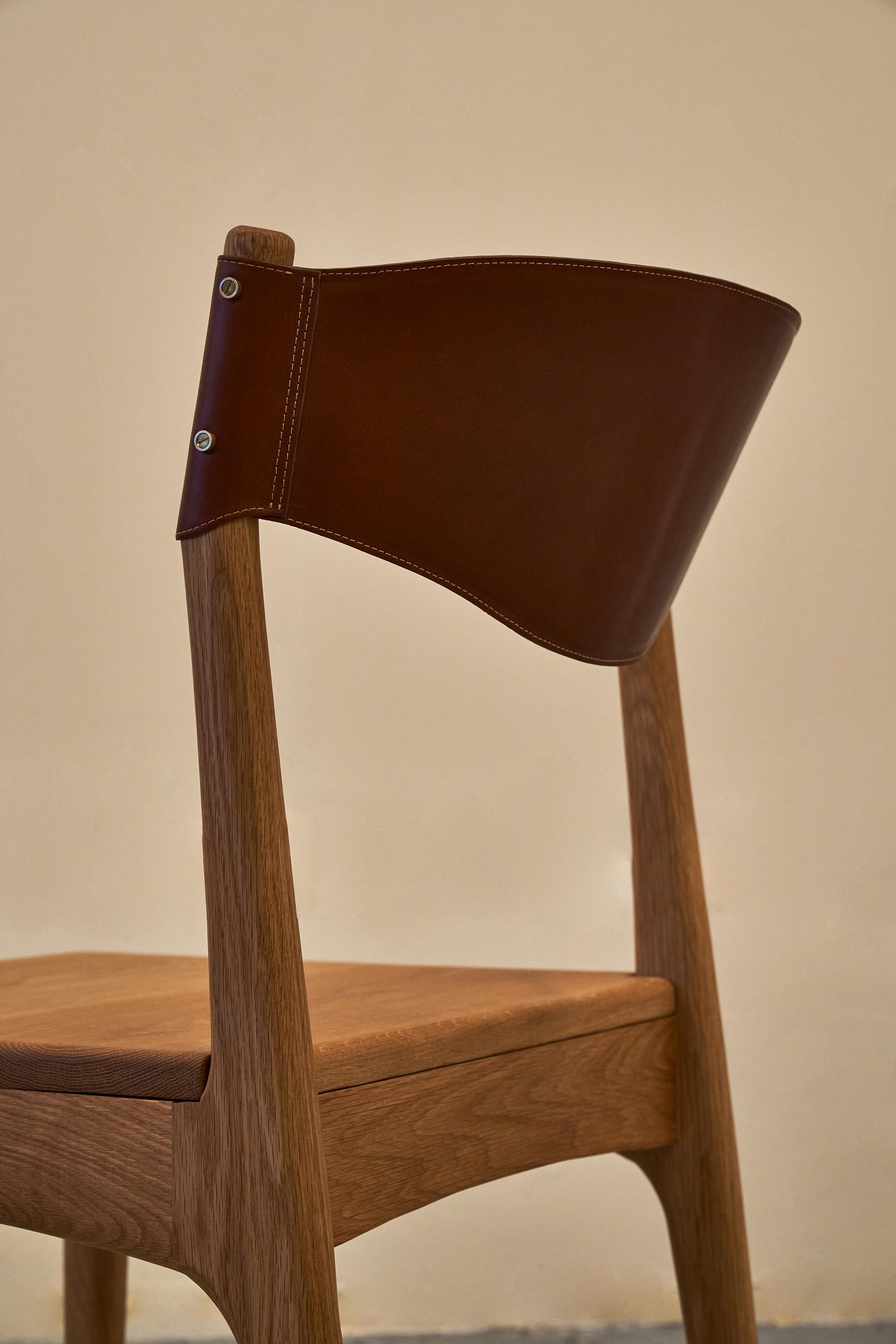 백참나무의 소재로 제작된 화이트 오크 가죽형 등받이 의자입니다.