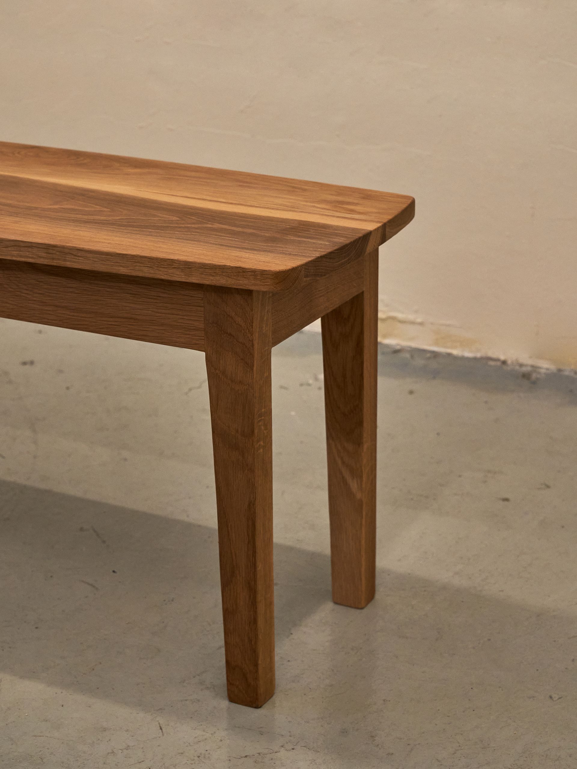 북미산 화이트오크, 백참나무의 소재로 제작된 오벌라인 형태의 벤치입니다.