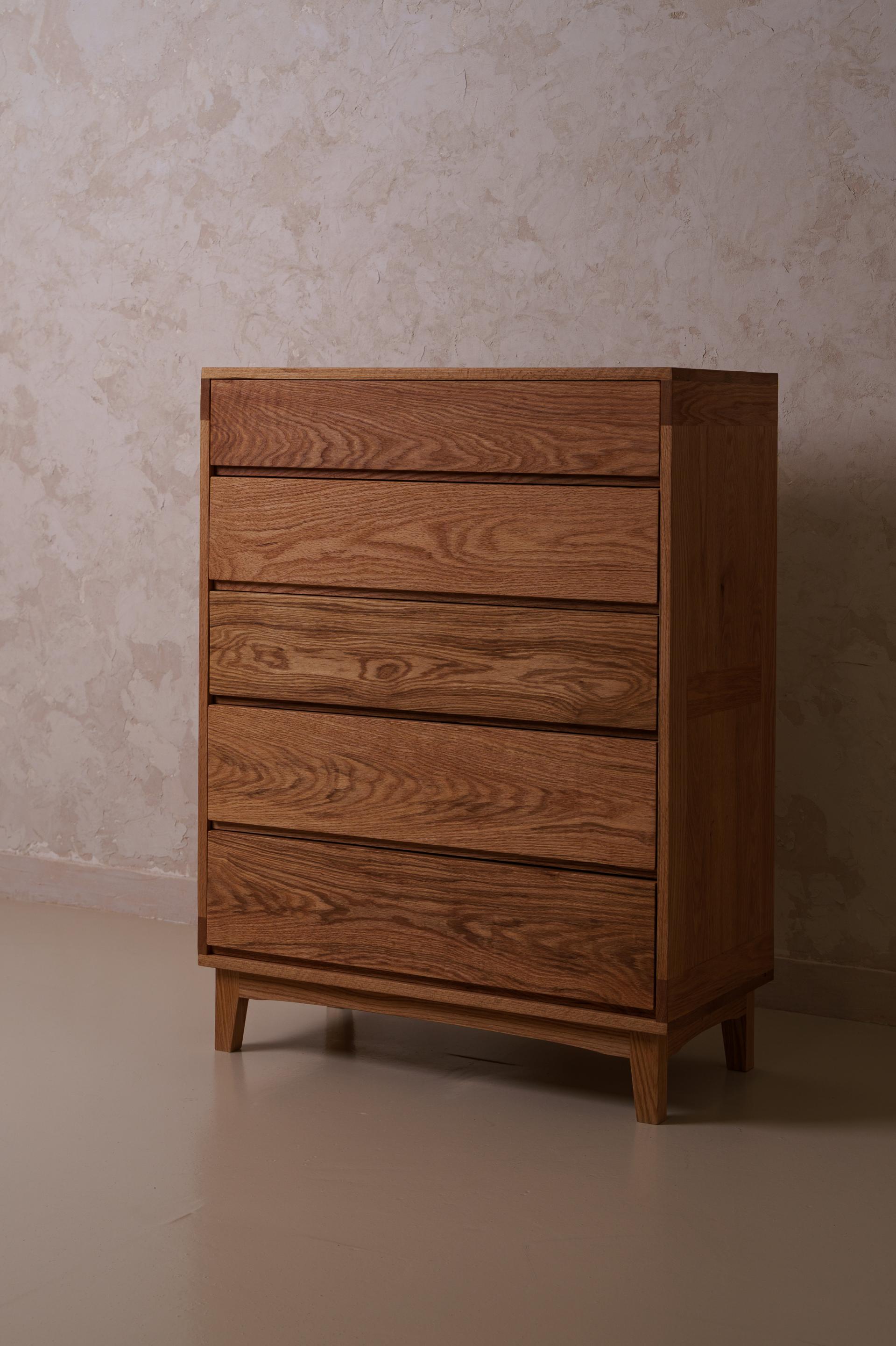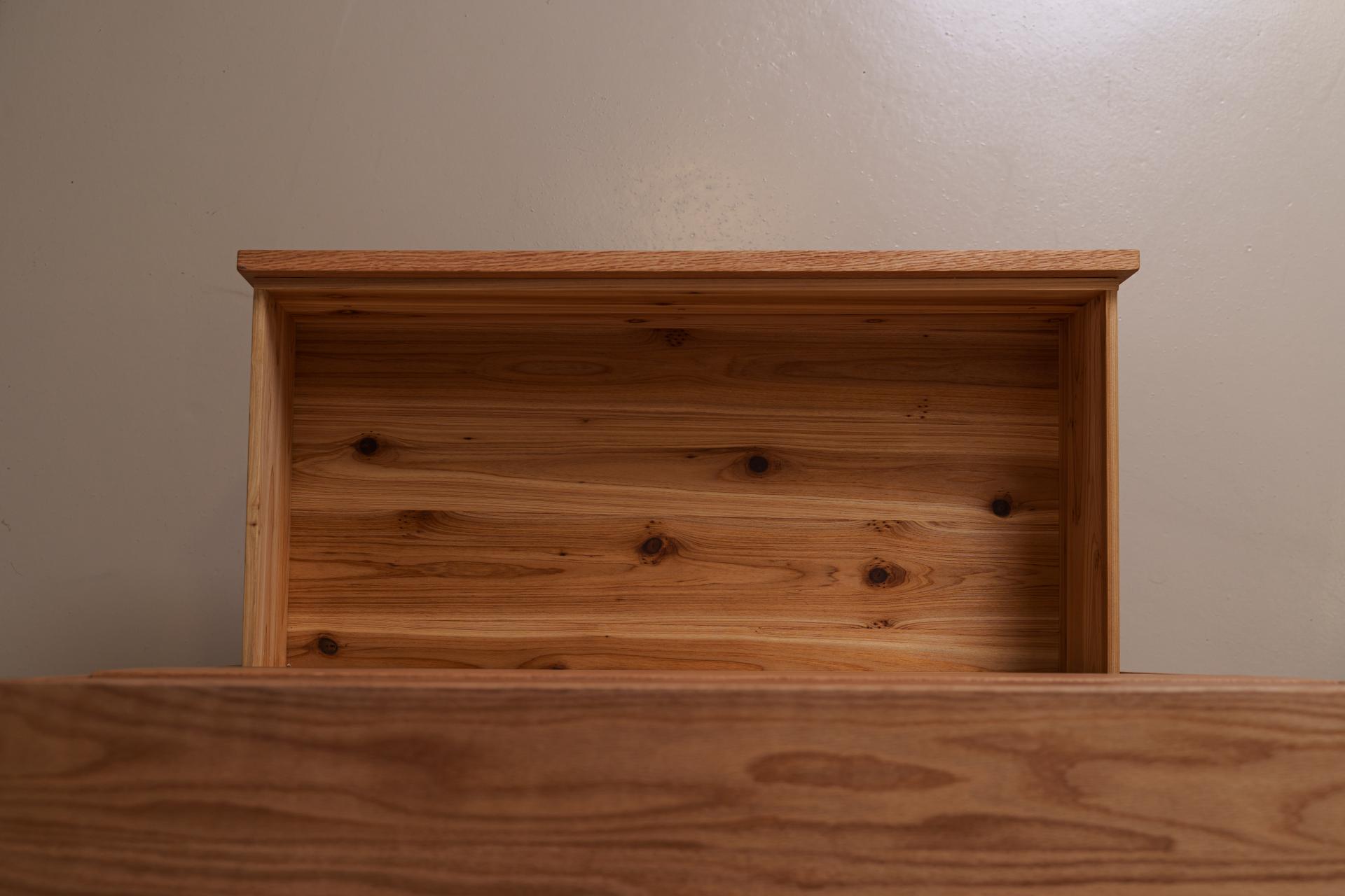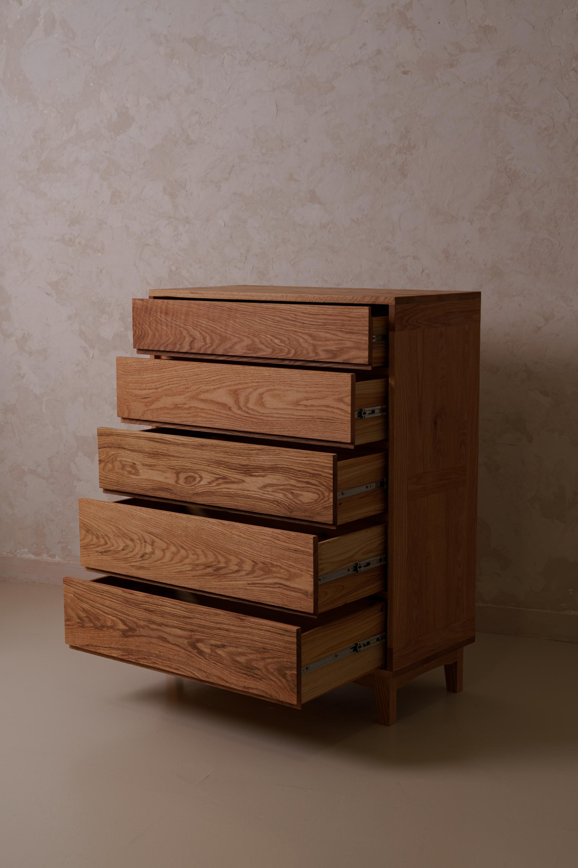세심하게 나뭇결의 매력을 끌어올린 5단 서랍장입니다. 원목 그대로의