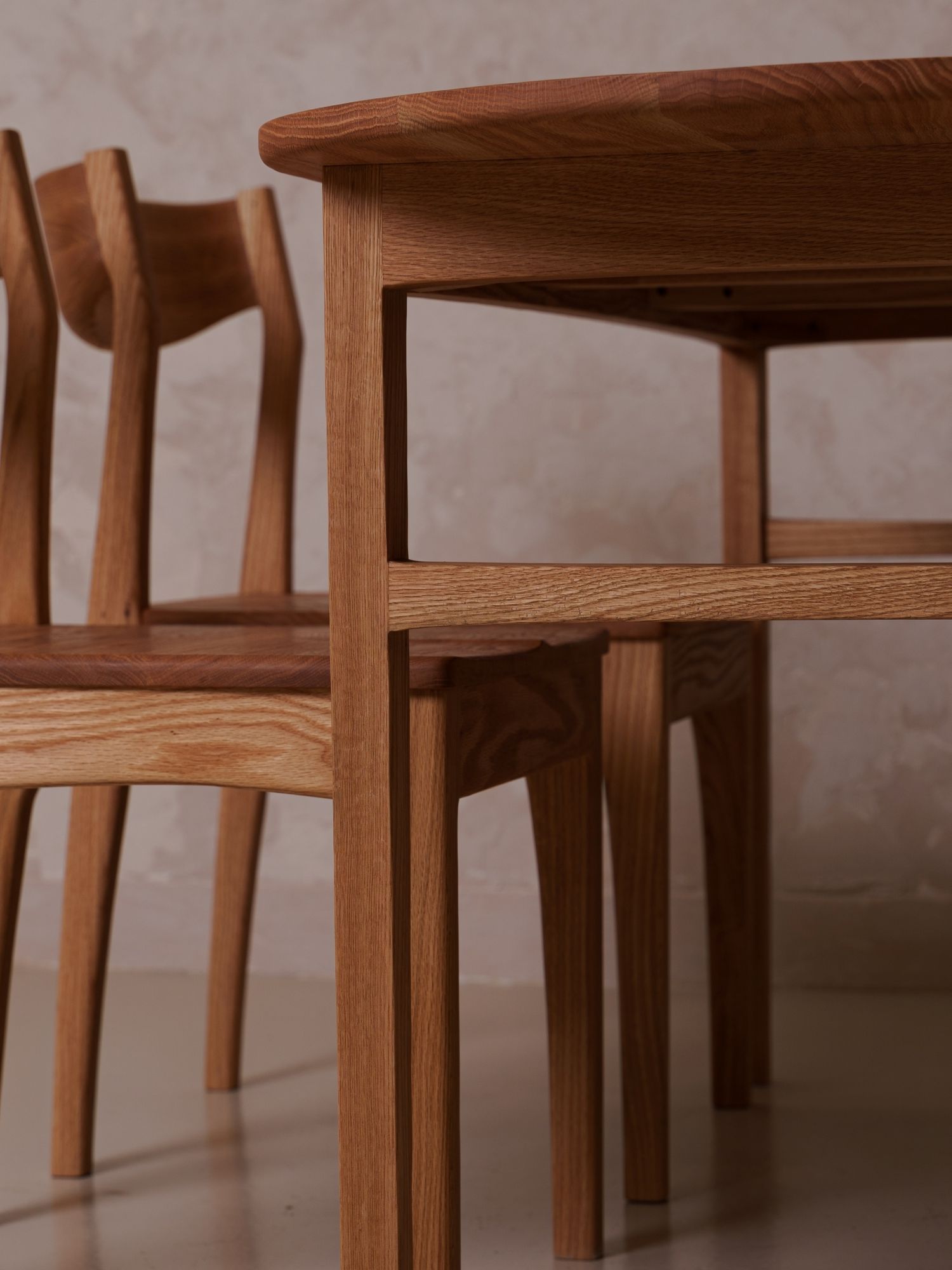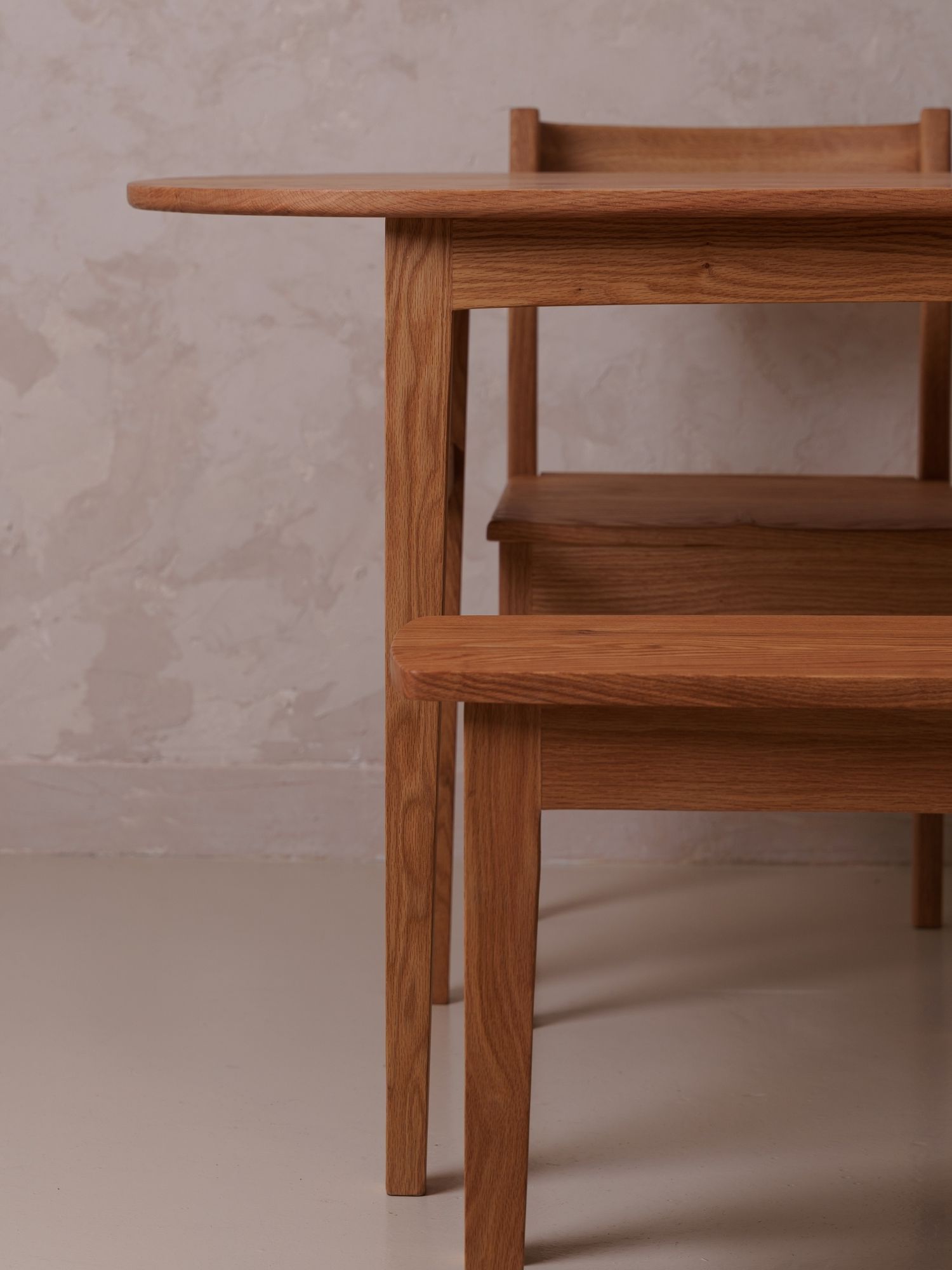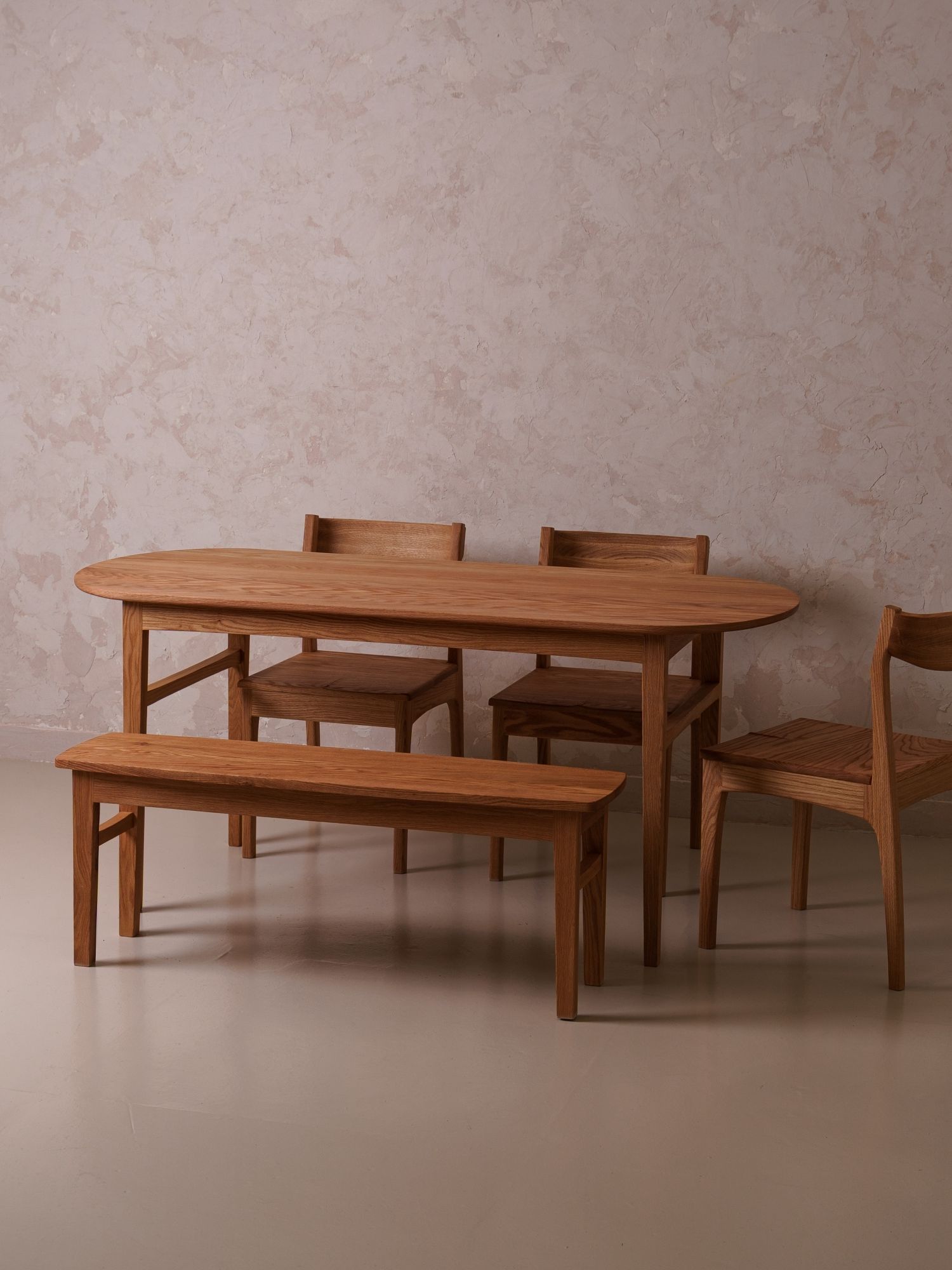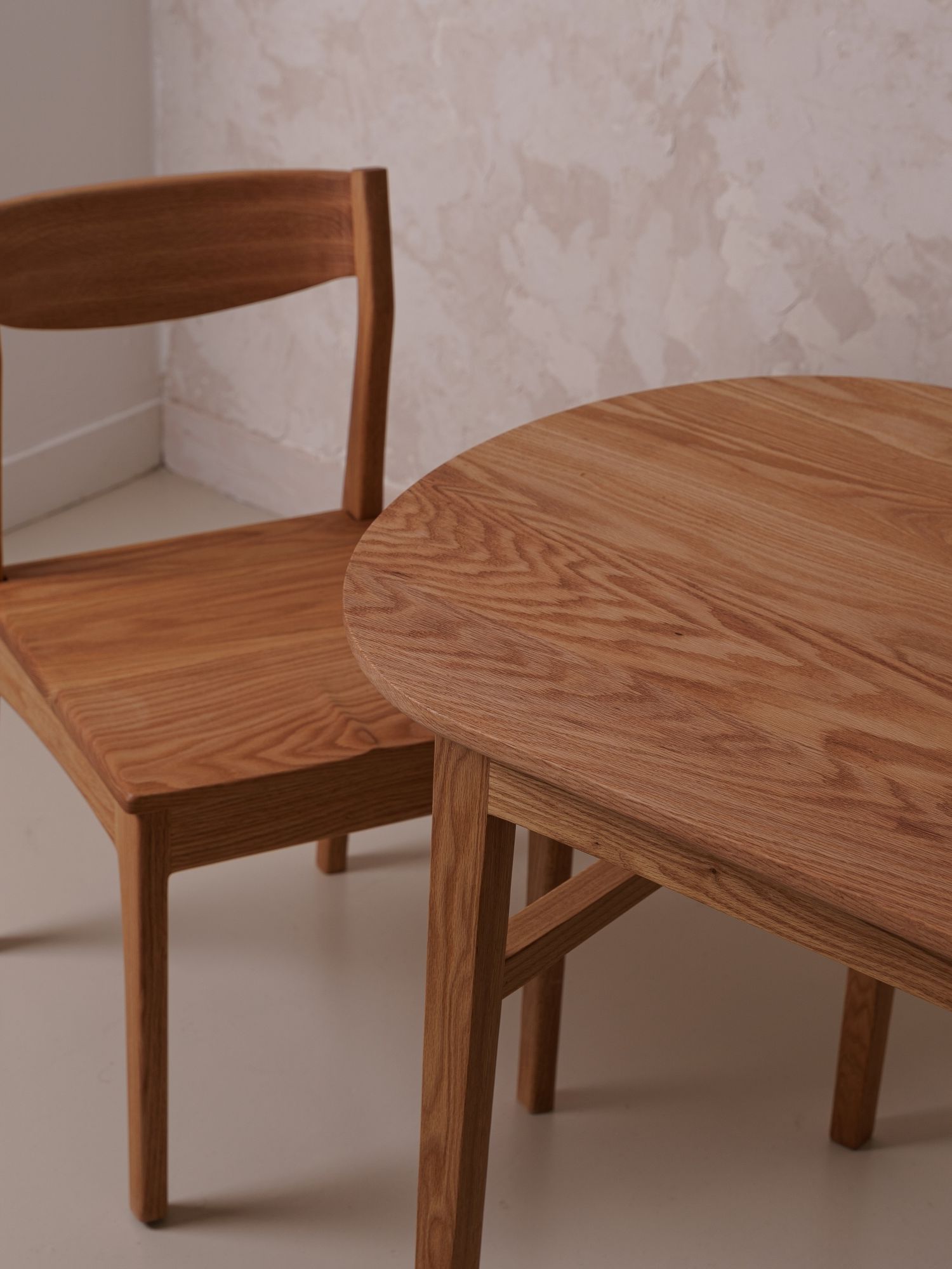 세심한 비율이 돋보이는 타원형 테이블입니다. 과하지 않게 잡아놓은 라운드 라인이