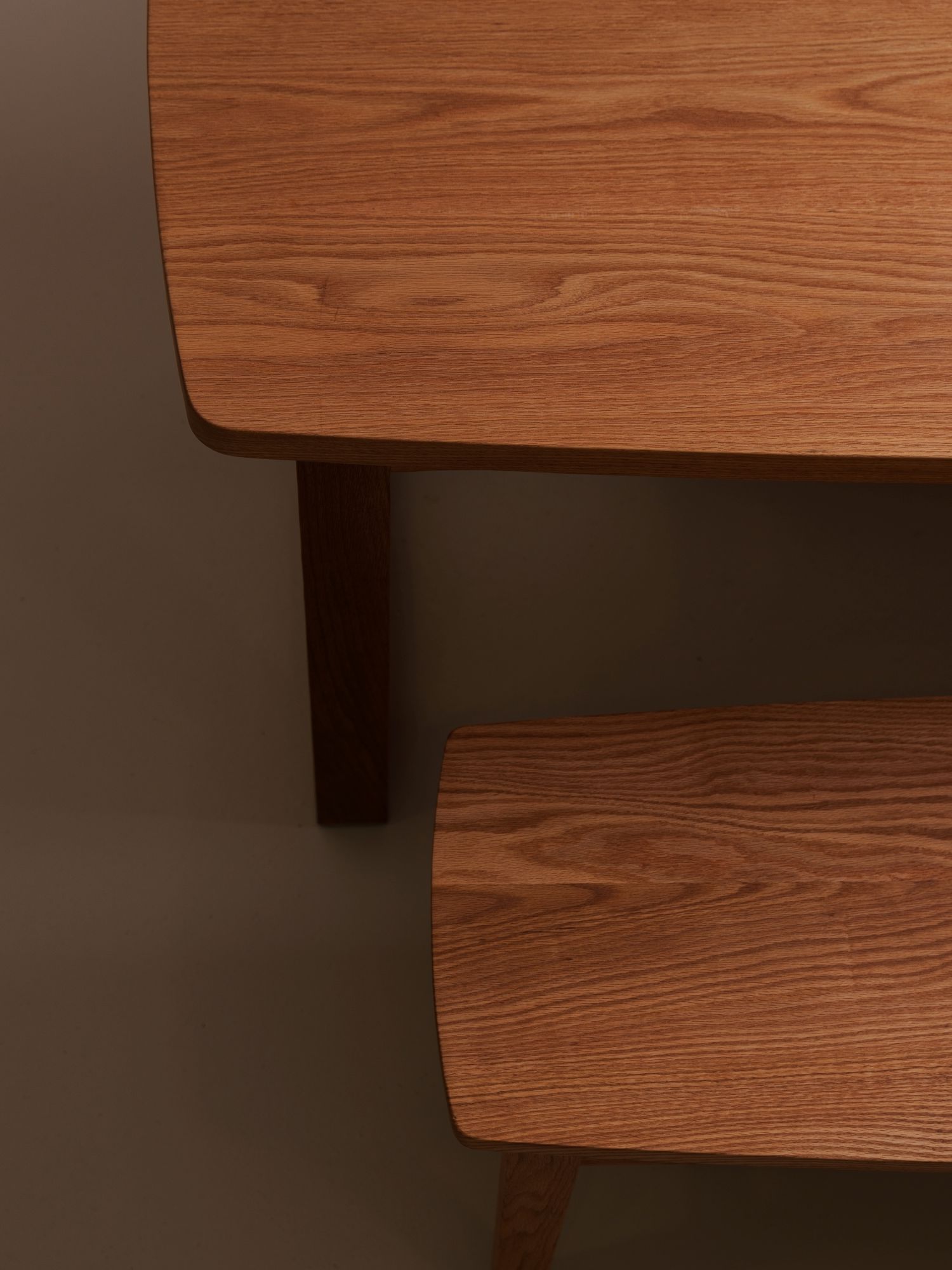 북미산 레드오크, 적참나무의 소재로 제작된 오벌라인 형태의 벤치입니다.